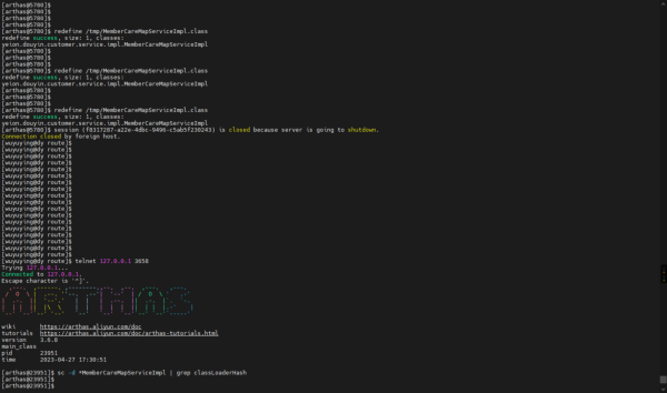 这时候就会进入上图中最后一行,可以理解为arthas容 器内部,这时候执行想要执行的arthas命令即可。