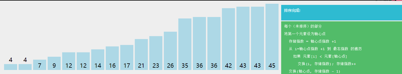 4.循环到n趟后结束,排序完成