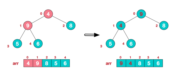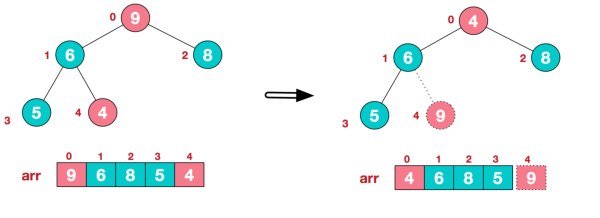 a.将堆顶元素9和末尾元素4进行交换