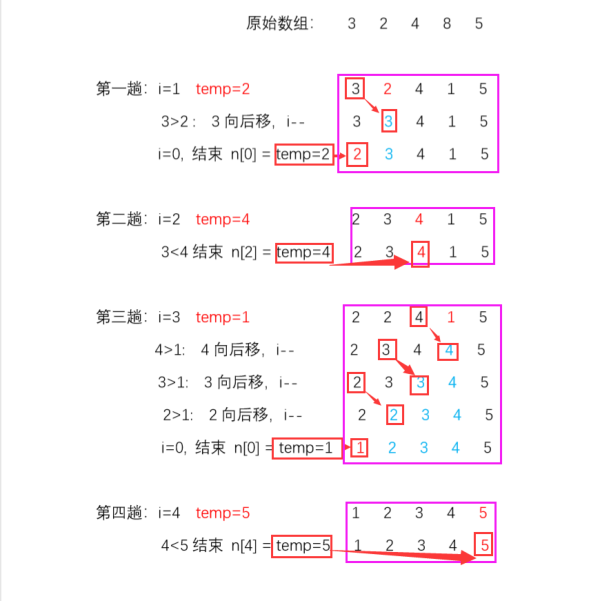 //将temp放到最终位置