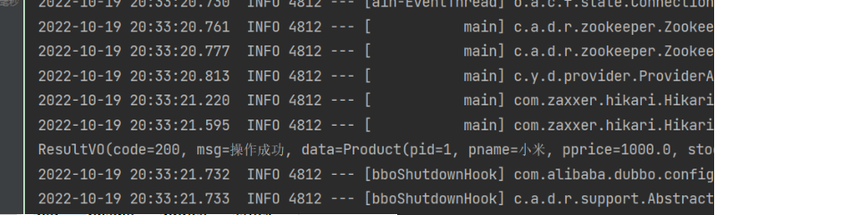 发现依然能访问成功,这是因为虽然zookeeper停了,但是我们的服务有缓存,也就是说,即使没有注册中心,我们也可以通过这个缓存,去得知我们需要的服务在哪个位置,然后再去请求,这体现了Dubbo的高可用性