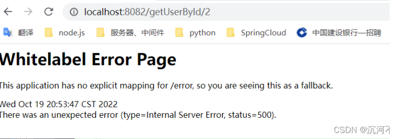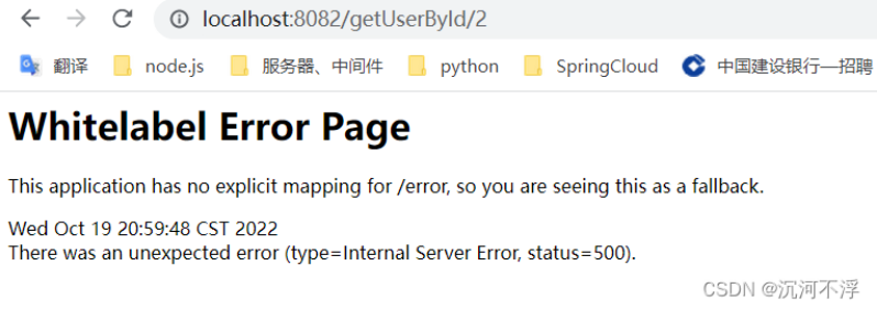 我们把ProviderApplication2和ProviderApplication3都关闭,然后把zookeeper也停掉,此时再访问http://localhost:8082/getUserById/1