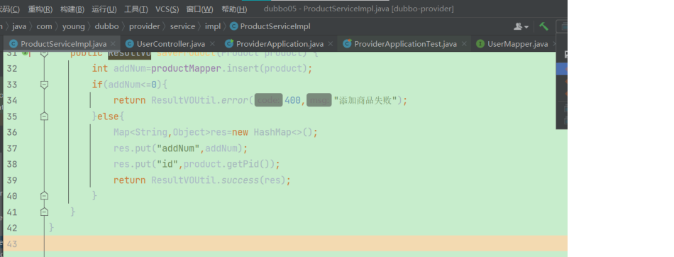 在上面的步骤都没问题时,我们可以确定数据库能正常访问,接下来假设我们要在UserServiceImpl中,调用ProductService来获取商品信息,具体操作如下