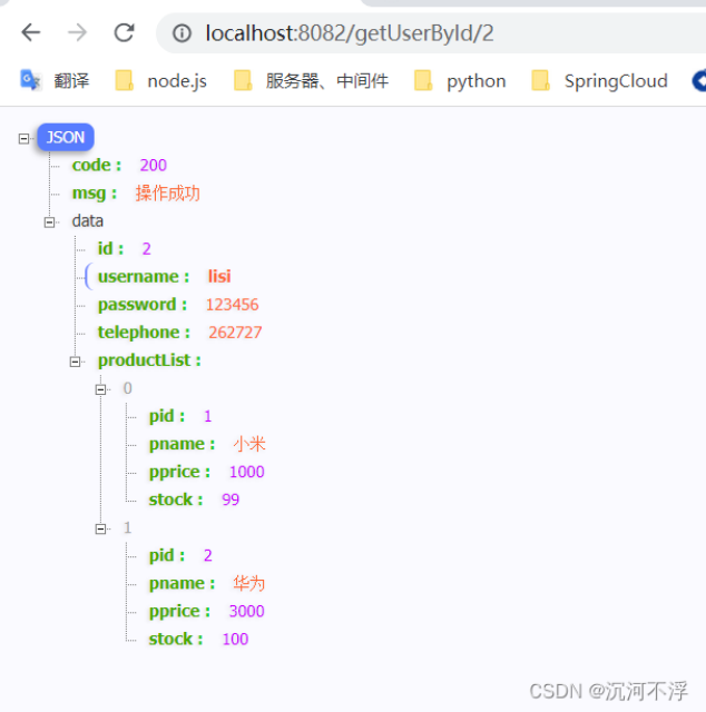 接着重新运行项目,访问http://localhost:8082/getUserById/1