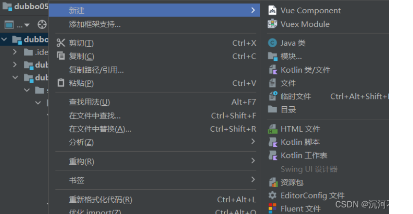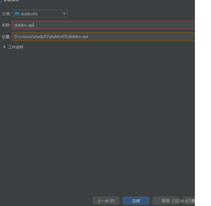 我们创建一个maven工程,假设命名为dubbo05,在该工程下,创建一个模板,假设模板名为dubbo-api